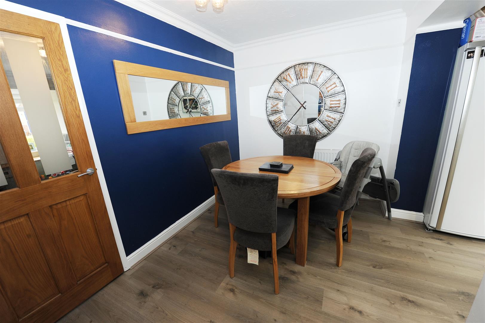 Central heating radiator, laminated floor, and ceiling coving, walk through to family area and kitchen.