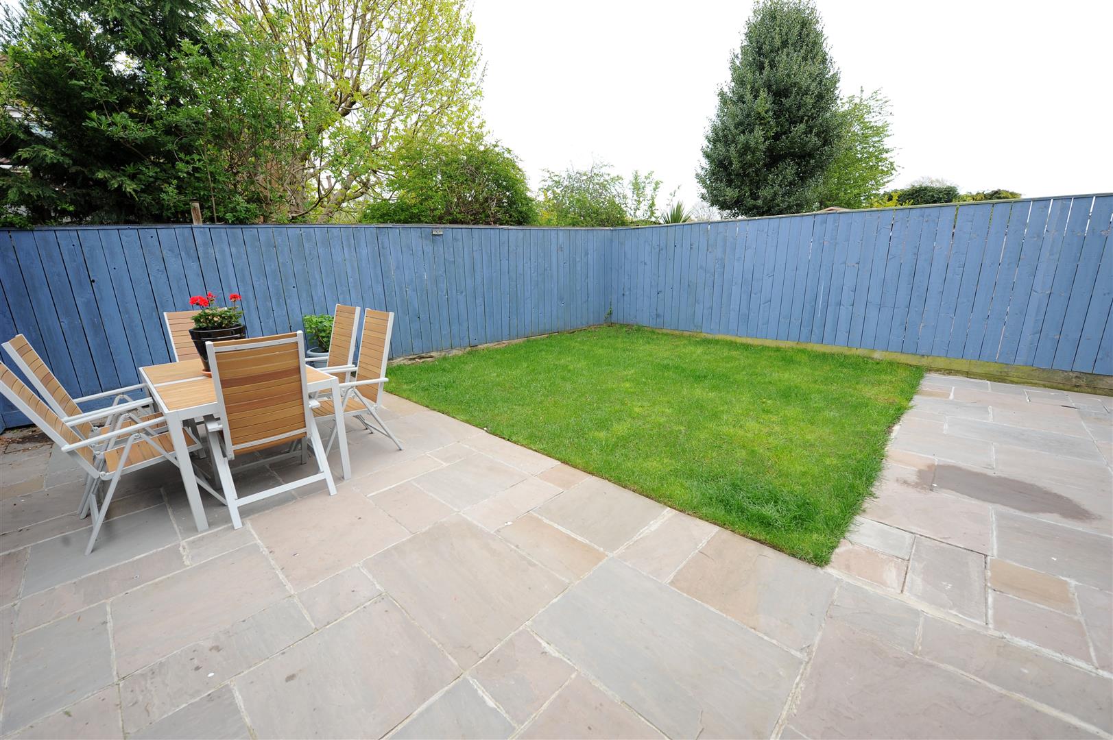 Indian stone paved areas to the rear with a lawned garden, outside light and water tap. Enclosed by fencing.