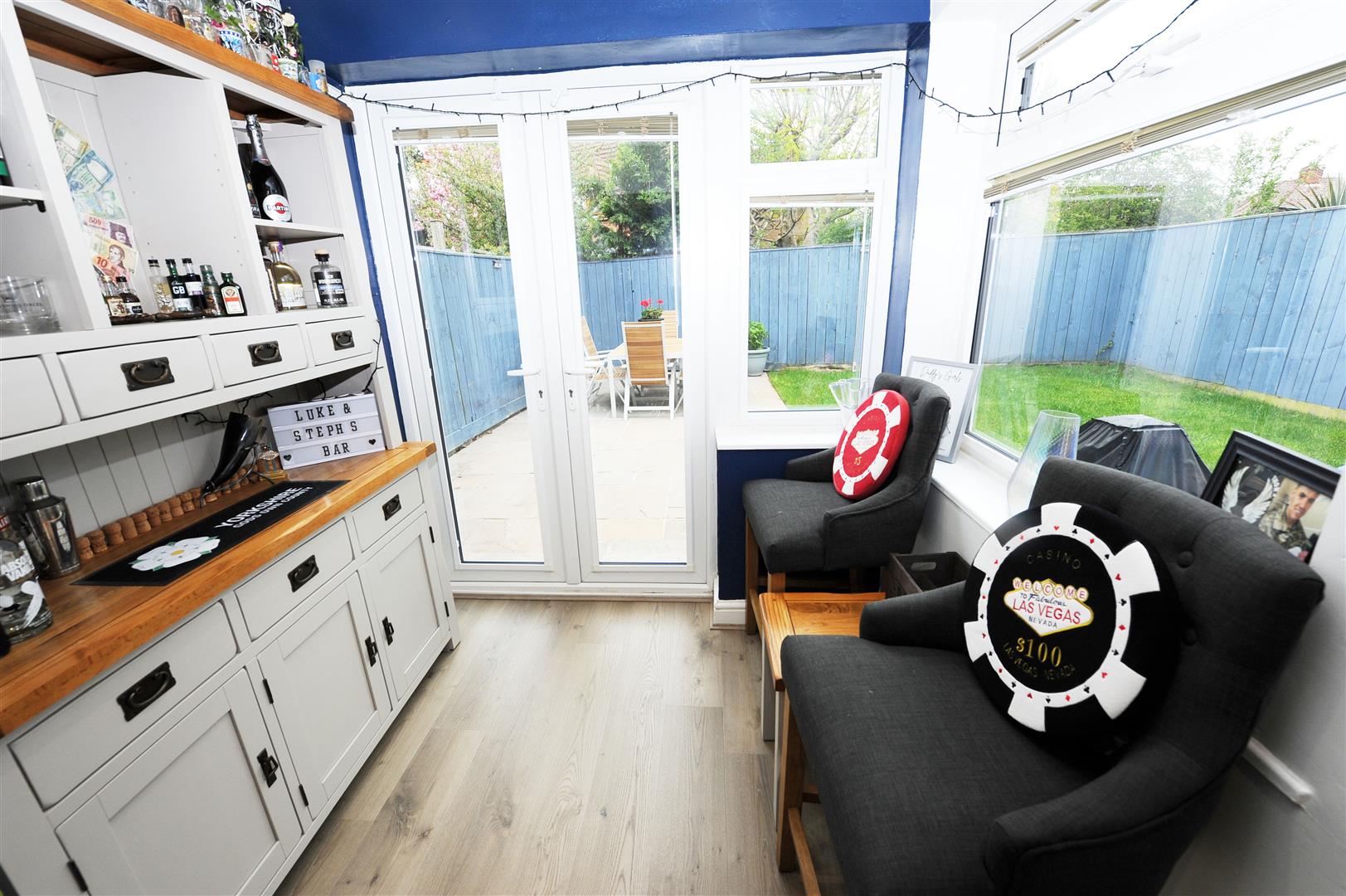 UPVC windows to side and rear with French doors leading to the garden. Down lighting.