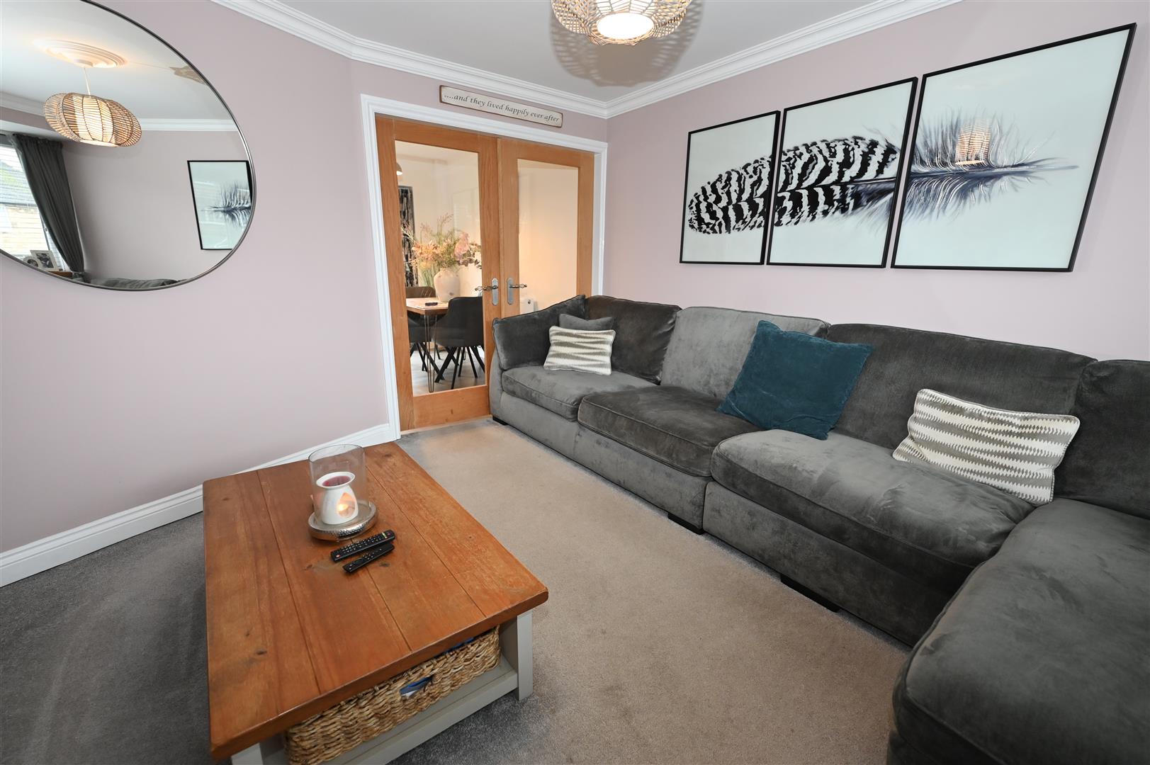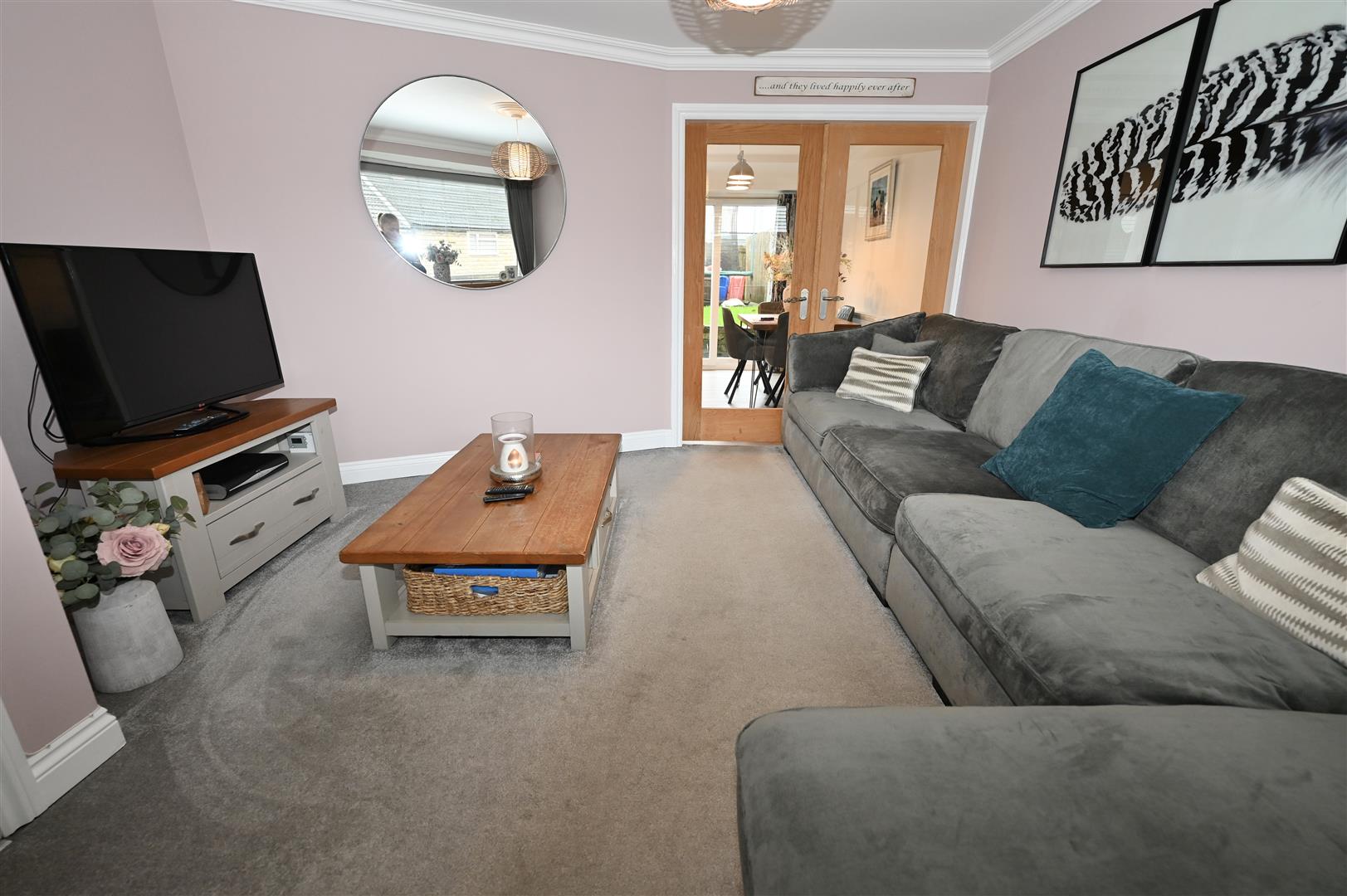 UPVC double glazed window to the front elevation. central heating radiator. tv aerial point, oak framed French Doors with glass inserts allowing natural light leading into the kitchen / dining room.