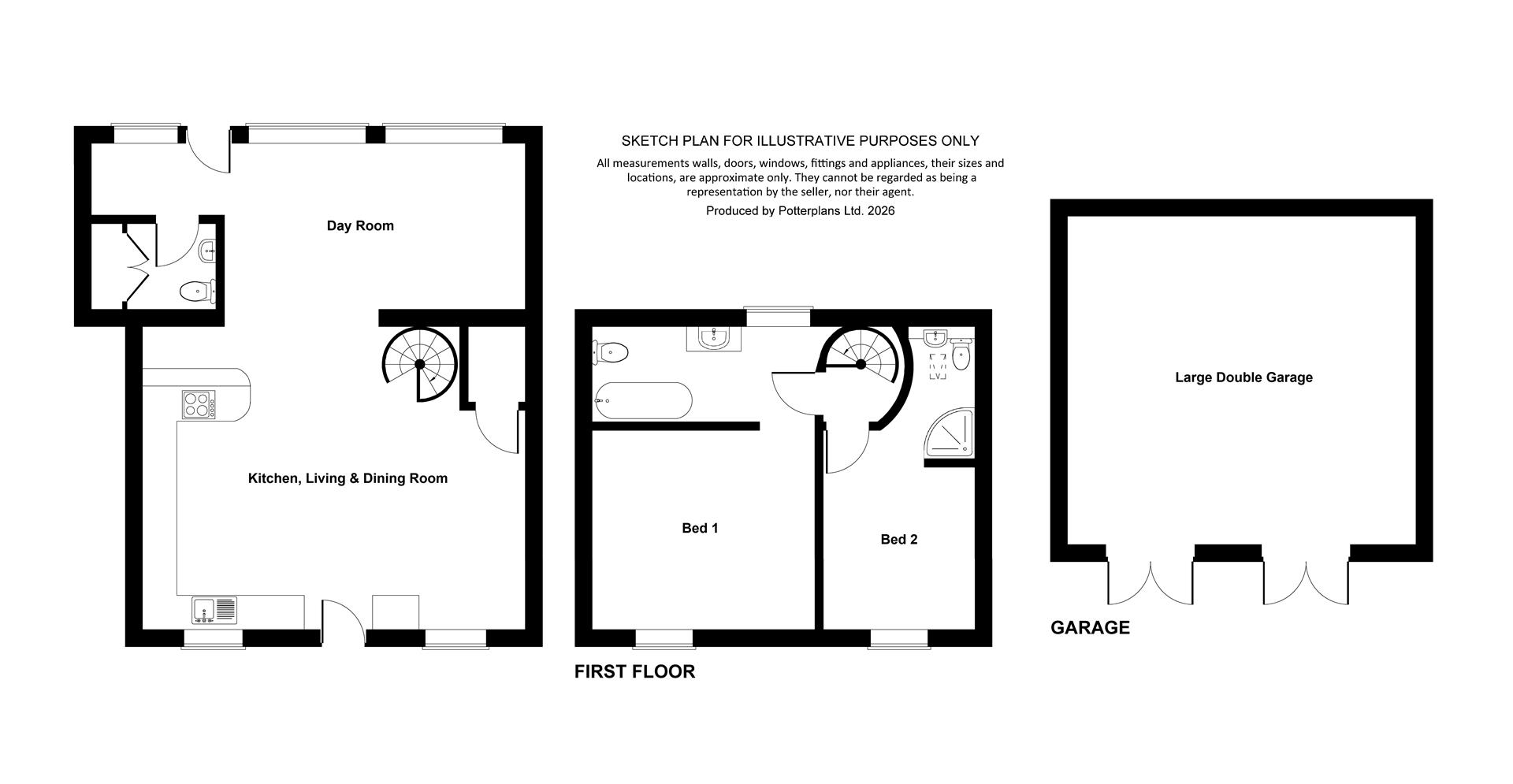 Including built-in cupboards with plumbing for washing machine & Grant oil boiler (NEW Nov 2023). Washbasin & WC.