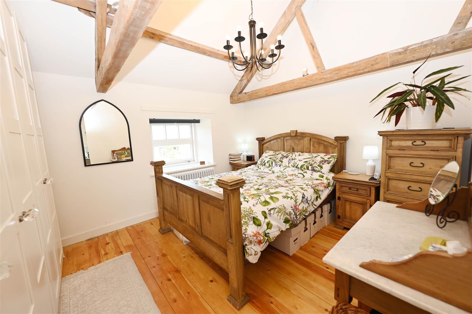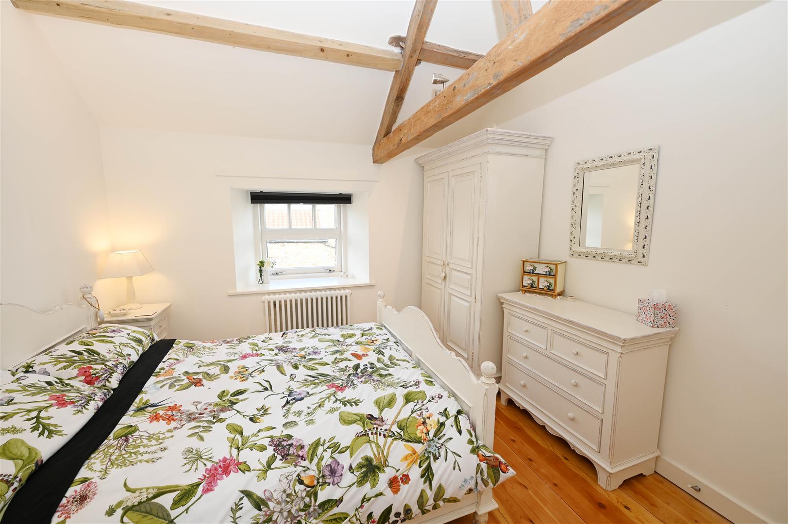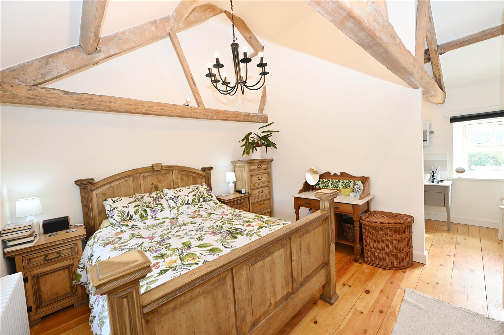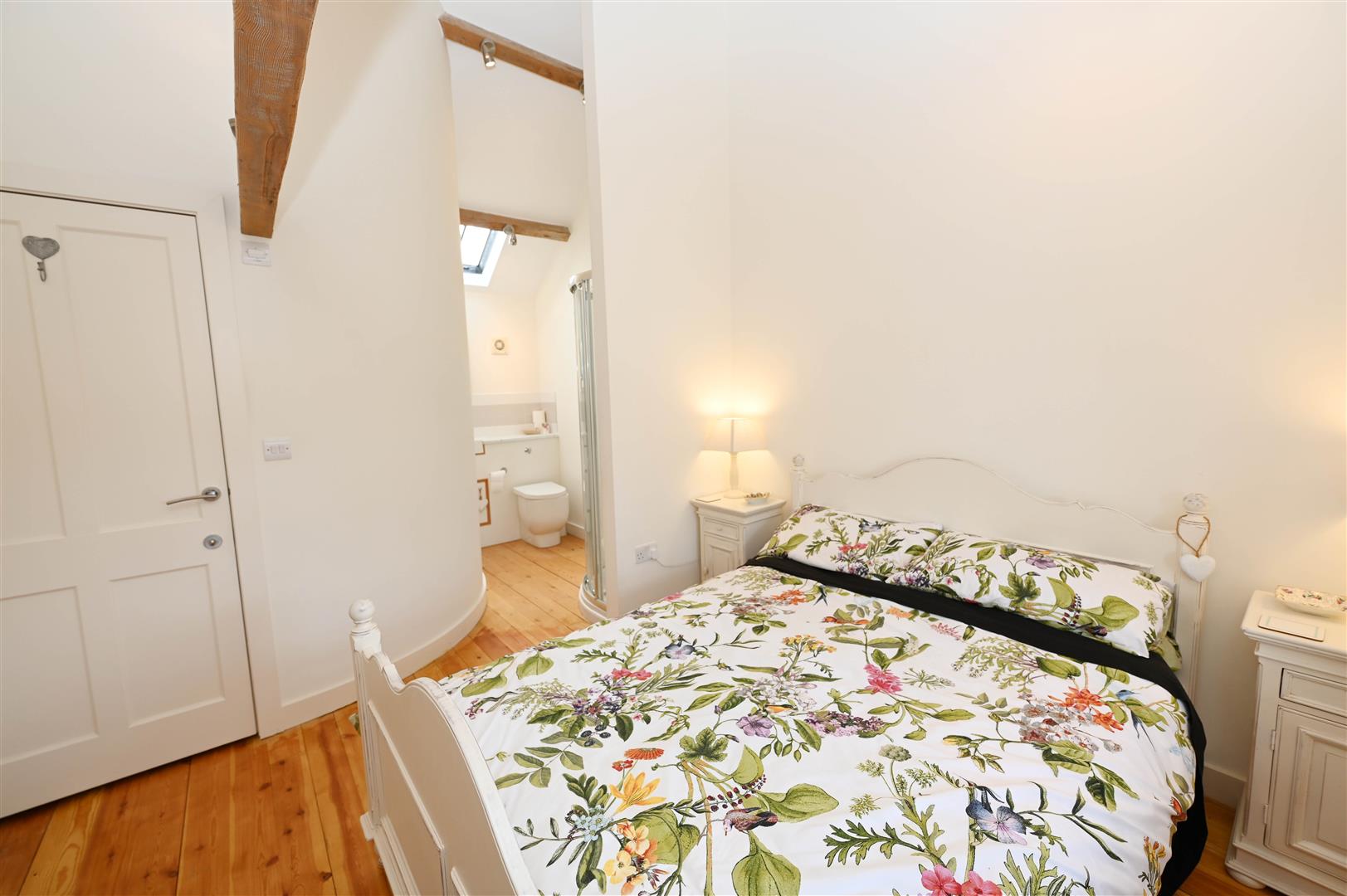 Truss-beam vaulted ceiling, double-glazed window to rear & lovely contour doorway to: