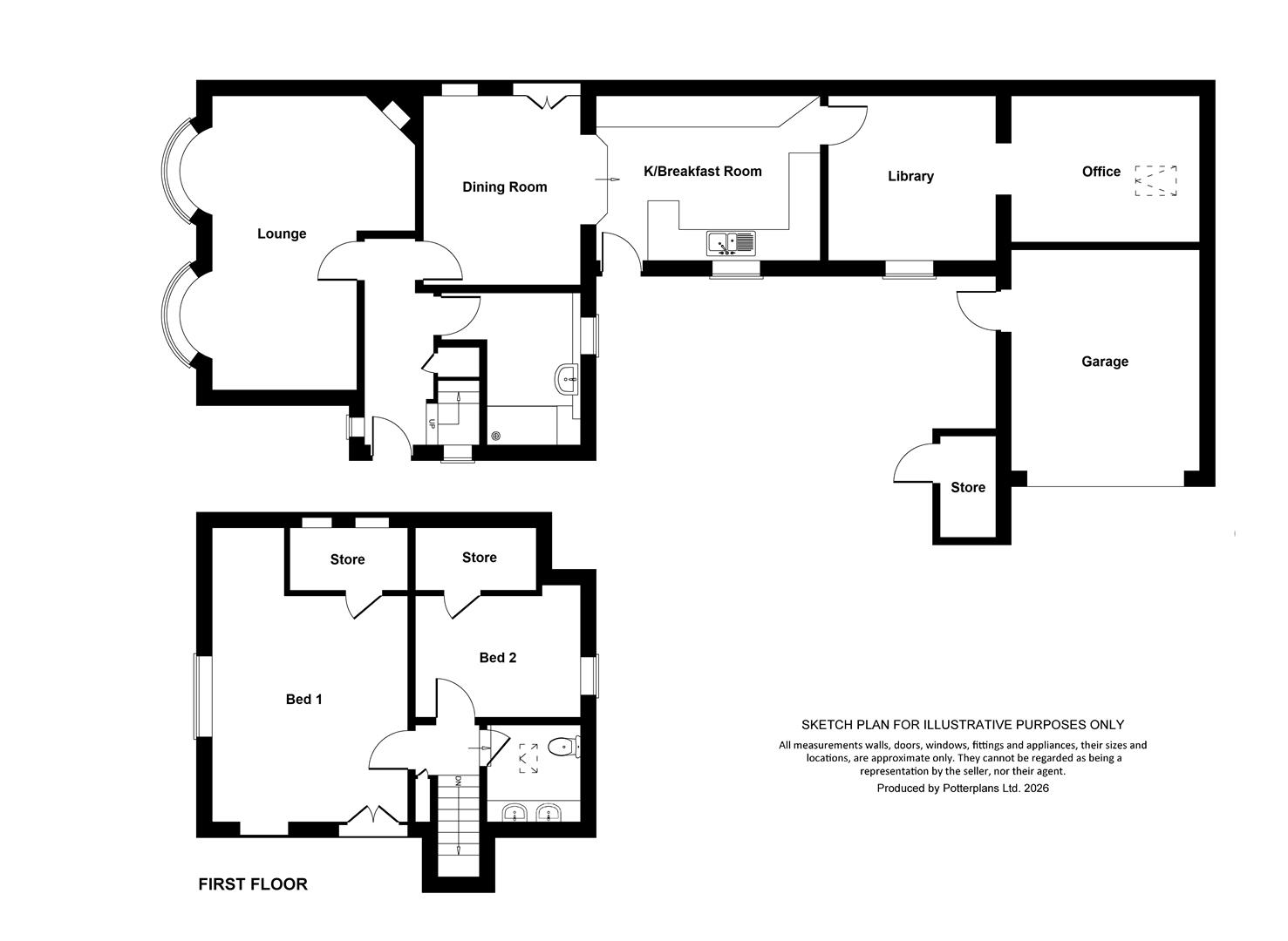 Fitted with shelving, central heating radiator and a double glazed window to the side. Arched walk through to the office.