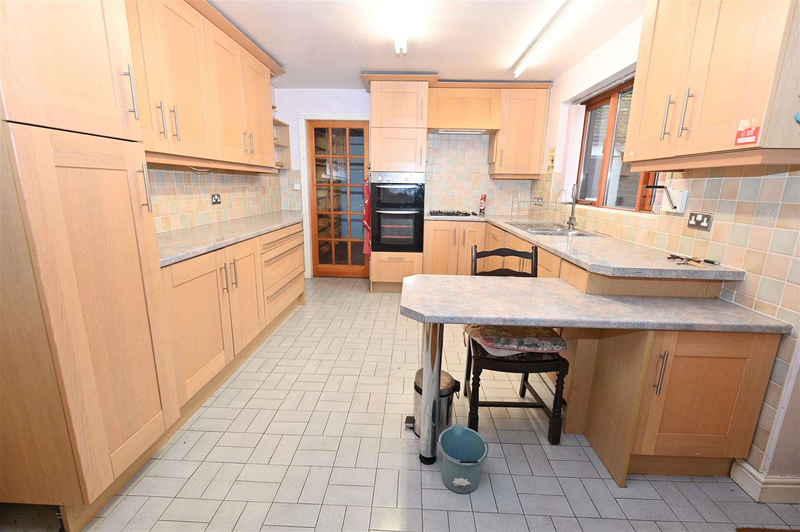 Currently fitted with a range of wall, base and drawer units with worktops, one and as half bowl stainless steel sink unit with mixer tap over and drainer, tiled splash back, breakfast bar, central heating radiator, part glazed stable door leading to the side courtyard and a double glazed window to the side. A door leads into the library.