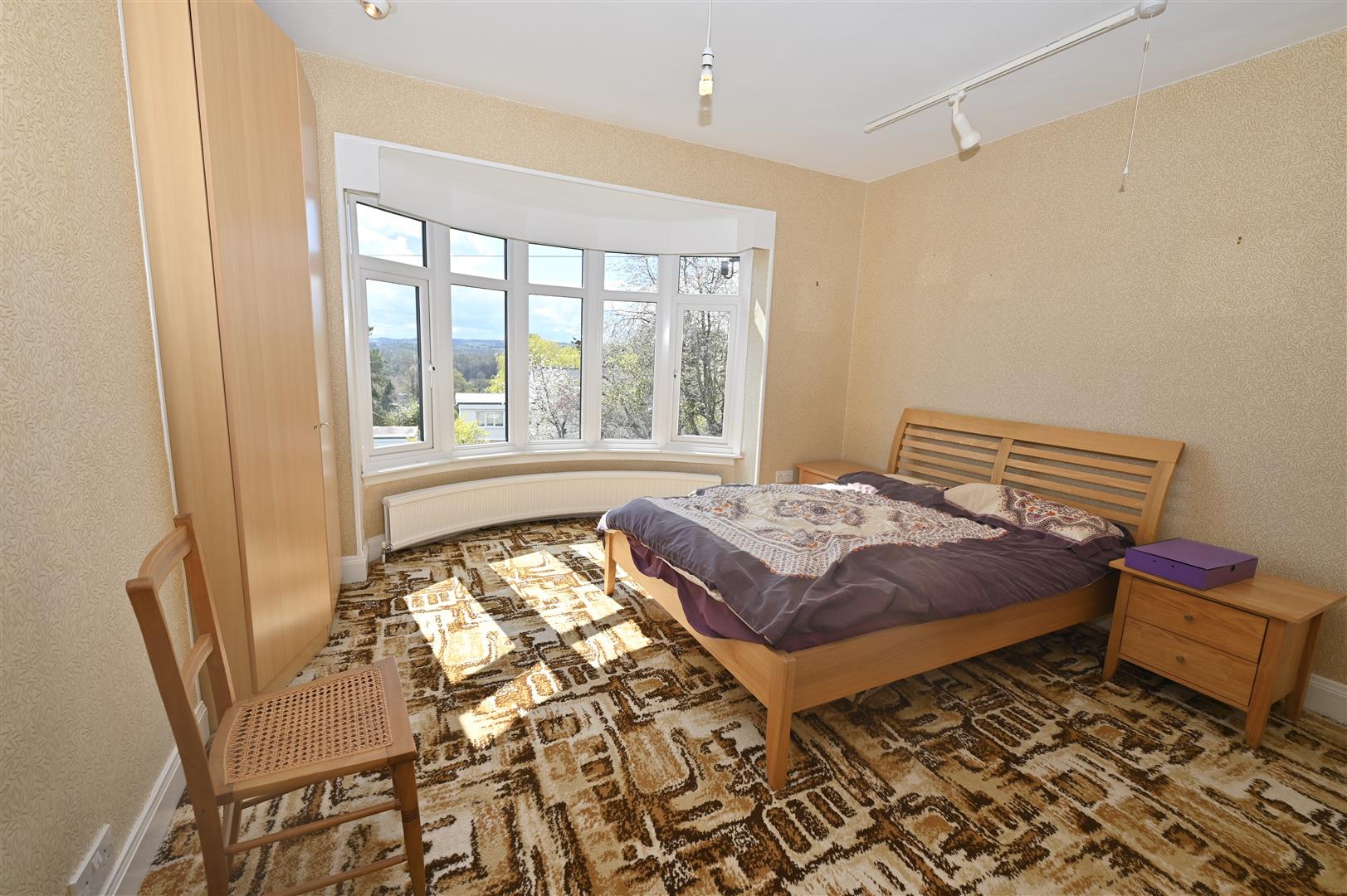 A double bedroom with a UPVC double glazed bay window to the front with lovely views and a central heating radiator.