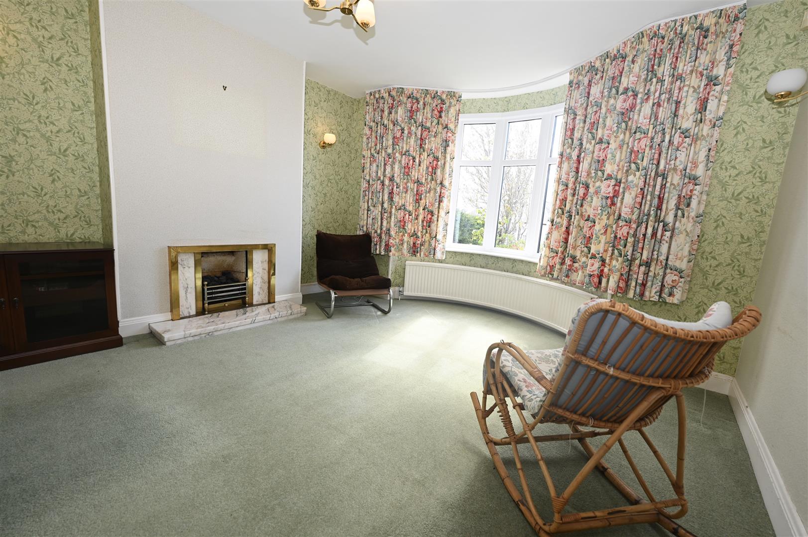 With a UPVC bay window to the front, four wall lights, gas fire with a marble hearth, tv aerial point and a central heating radiator.