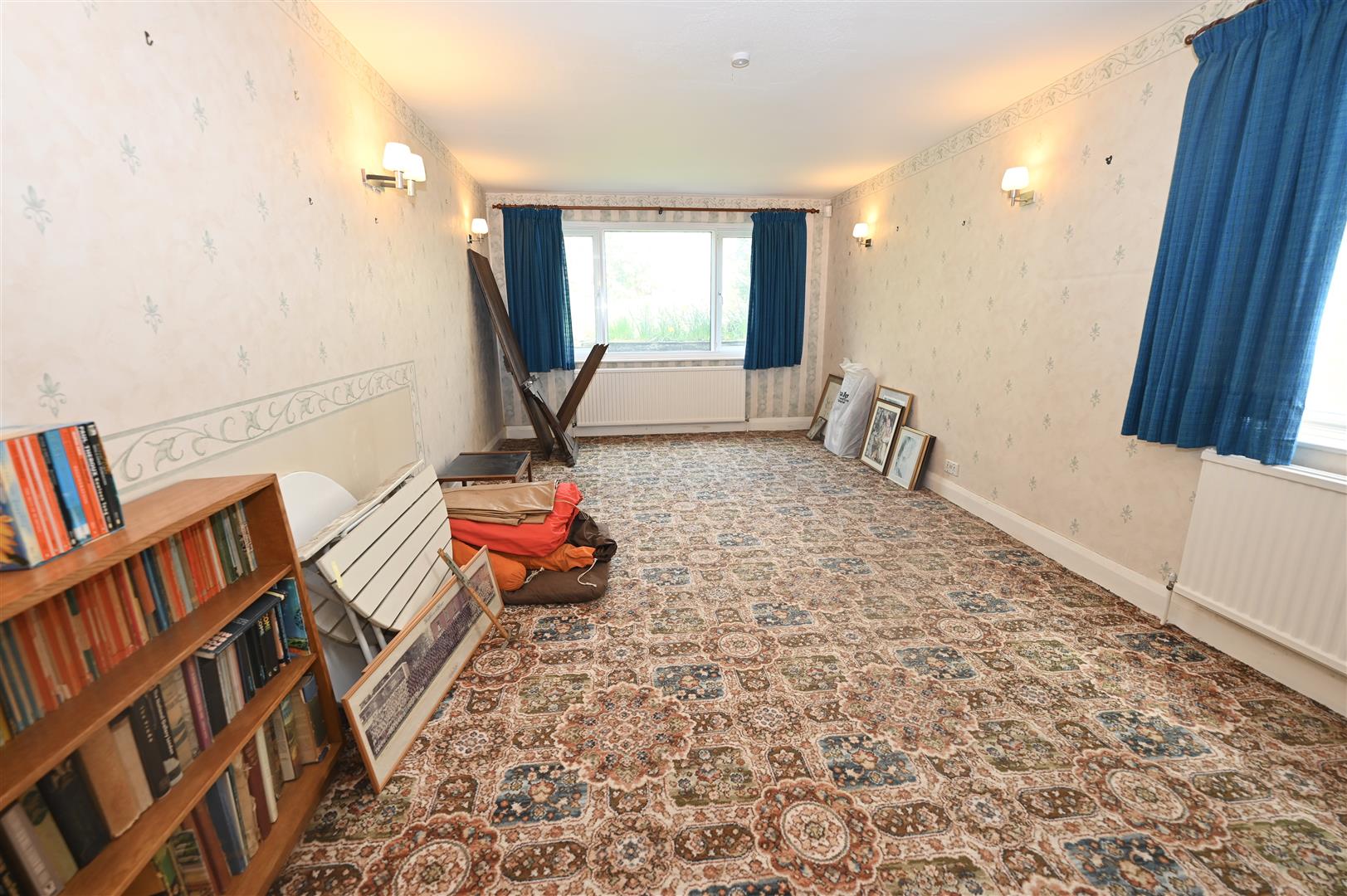 A generous sized room that could be used for a wide range of purposes. With a UPVC double glazed window to the rear with secondary double glazing and another to the side, seven wall lights and two central heating radiators