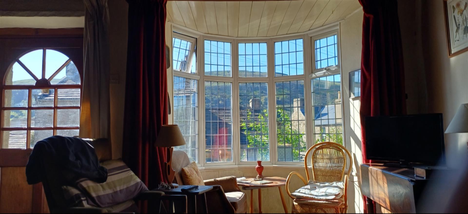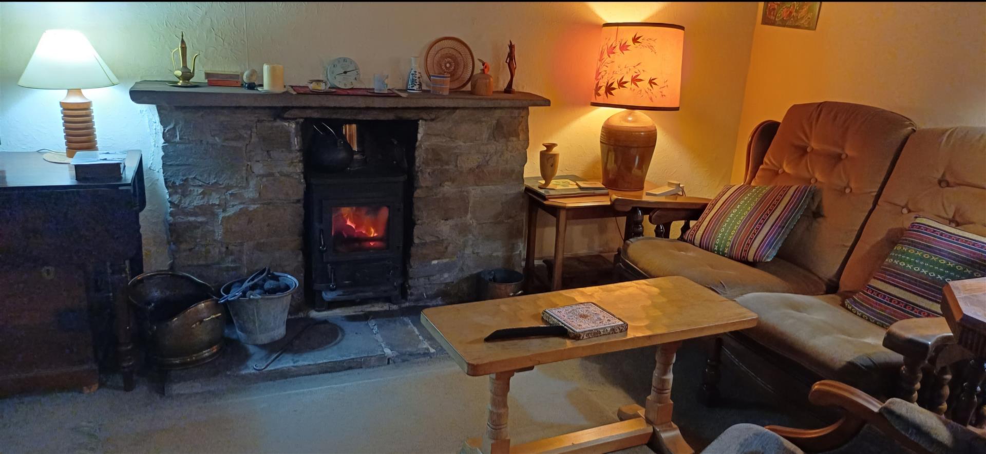 To the lounge area there is a UPVC leaded bay window to the front with pleasant views of the front cottage garden and hills beyond. Feature stone fireplace with a multi fuel stove and stone hearth, tv aerial point, exposed ceiling beams.
