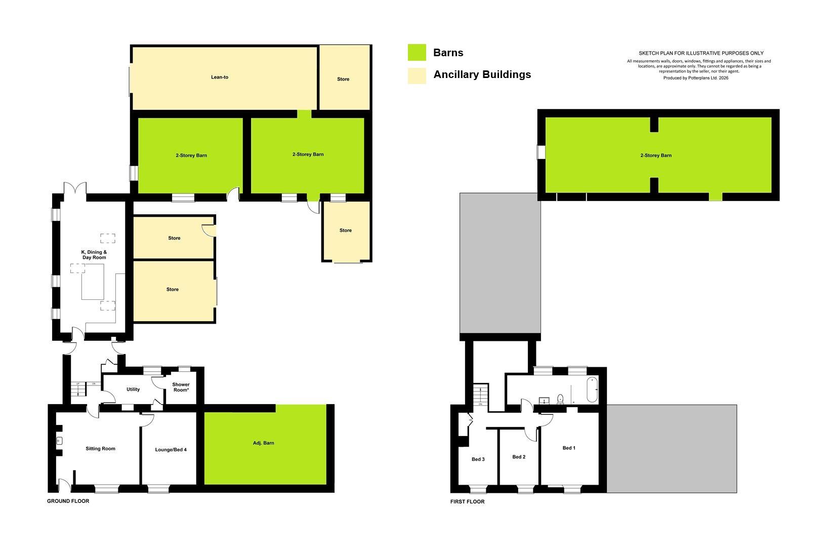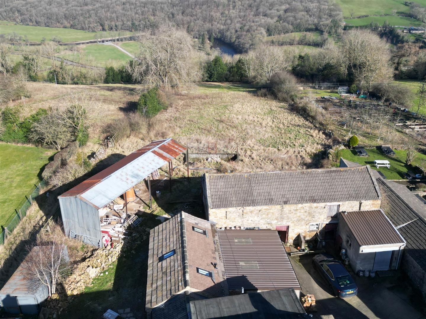 Beyond the property is fenced rough meadow land & a Dutch Barn.