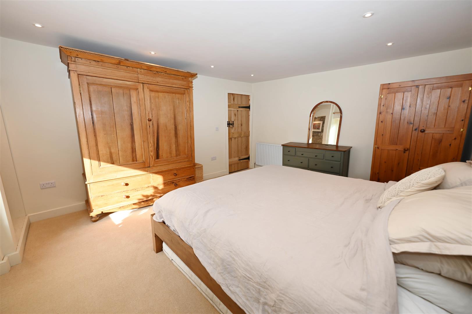 Bespoke chef’s fitted kitchen with Oak wall & floor units with stainless steel worktops & inset sink, matching island unit with, Viking Professional, dual zone gas range cooker (6 burners, 2 ovens & griddle) & integrated dishwasher. Limestone flooring (Under-floor heating), double-glazed recessed side windows, Velux windows & double-glazed patio door to outside.
