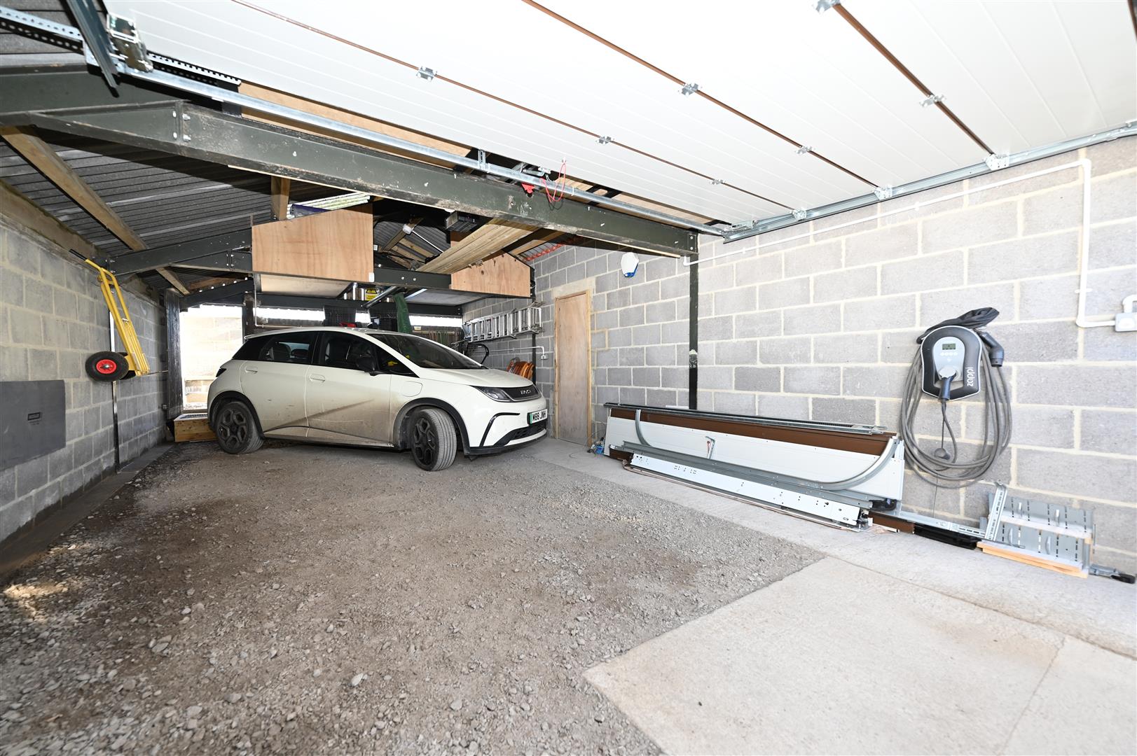 With electric roller door – 3.57m (11'8") width & 2.07m (6'9") height. EV charging point, plenty of double power sockets & lighting. Doors to: