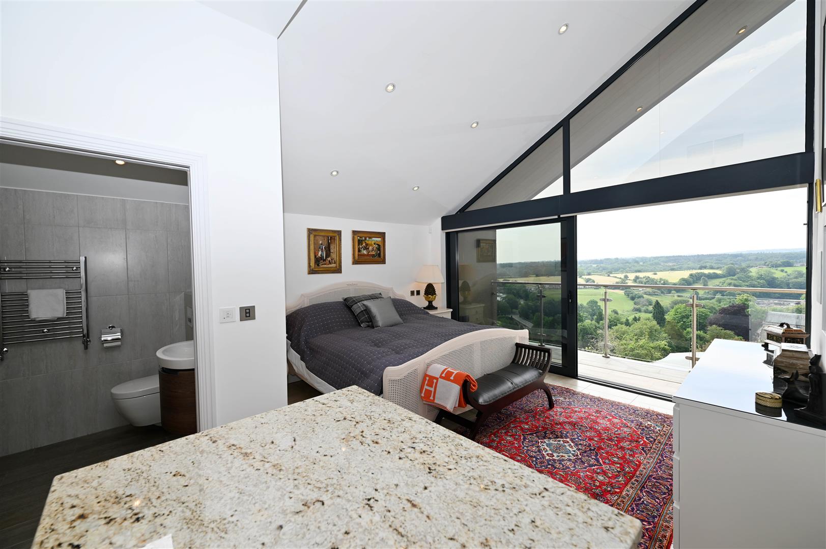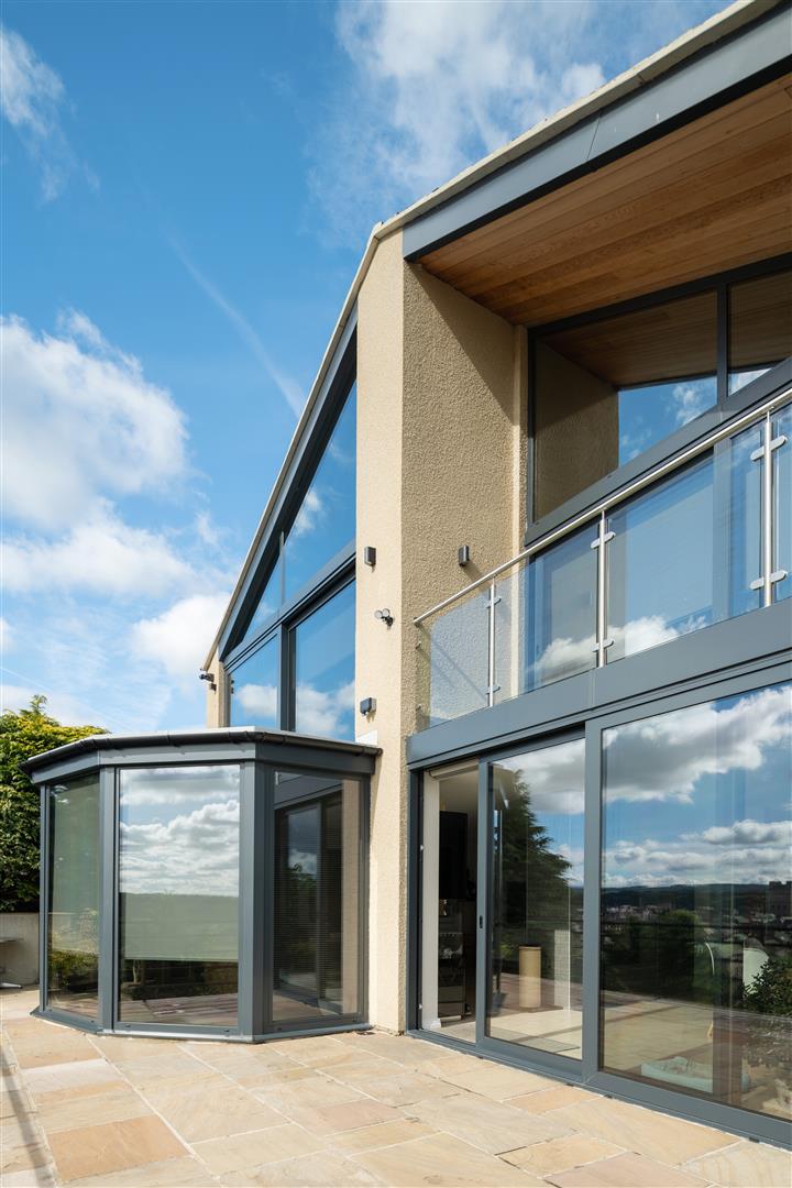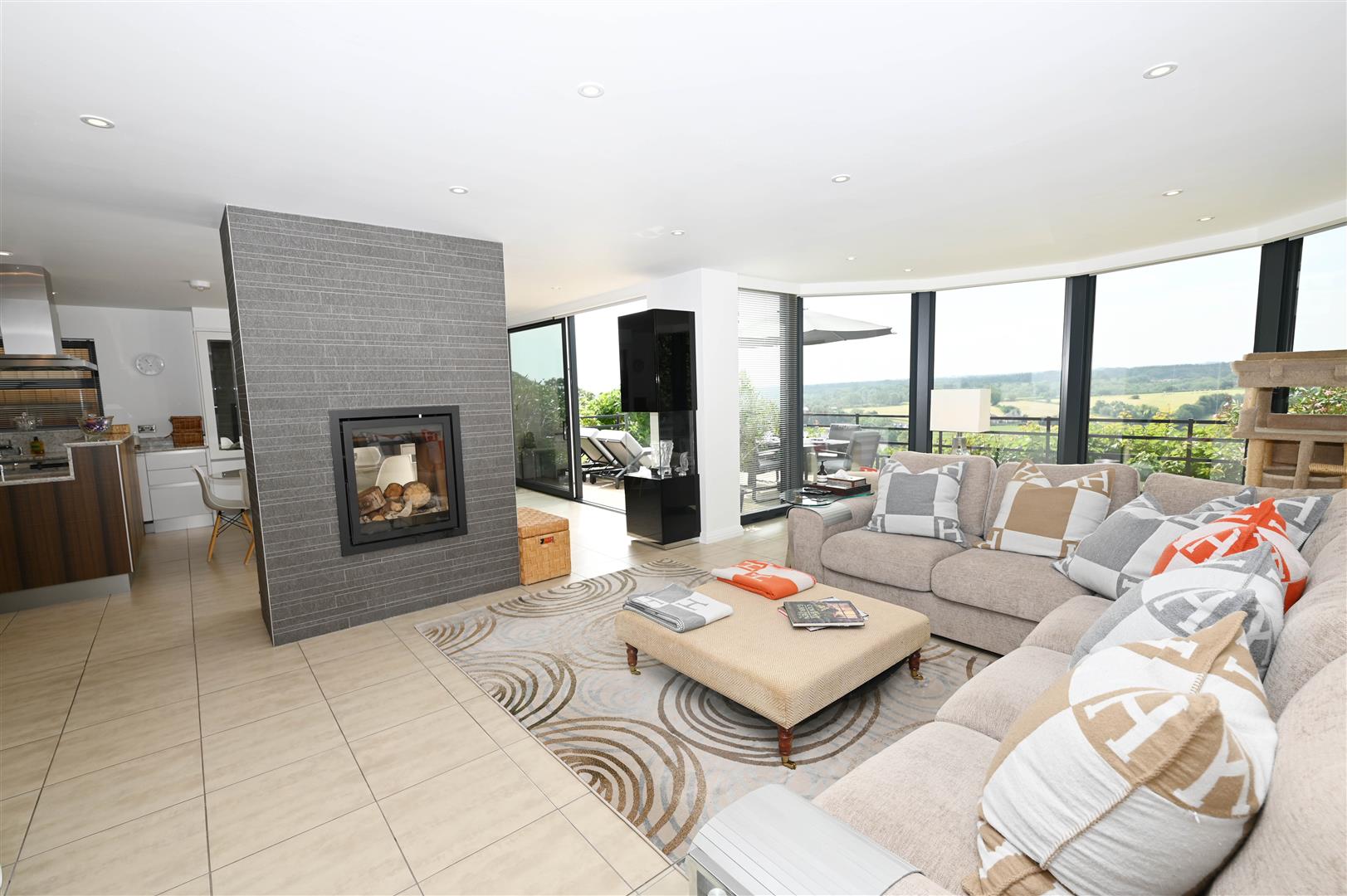 Convex south facing ‘panorama’ windows & doors opening onto the rear terrace. Air-conditioned & Bose surround sound. Open to: