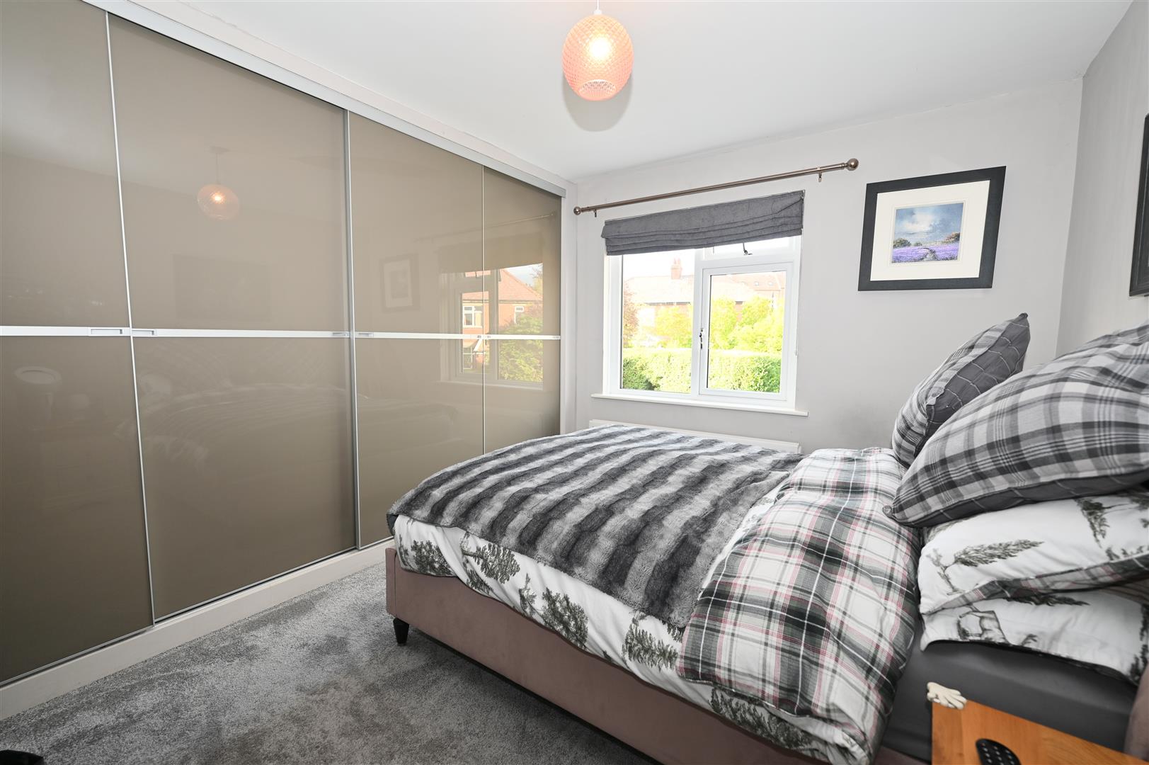 A double bedroom with built-in contemporary wall-to-wall wardrobes, tv aerial point, central heating radiator and UPVC double glazed window to rear.