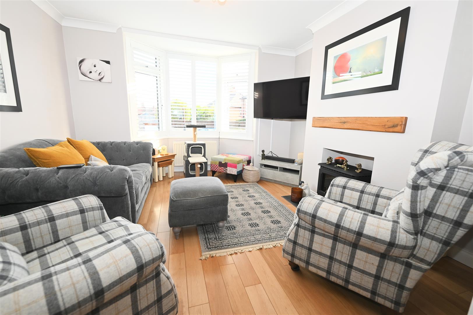 With wooden flooring, fireplace with beamed mantel and electric stove, central heating radiator, UPVC double glazed bay window to front, with plantation shutters, coving and tv aerial point.