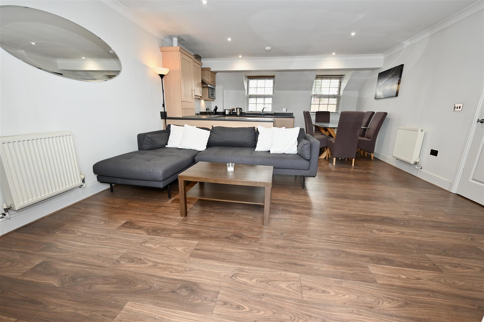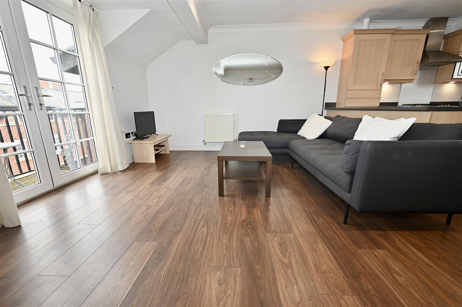 With three central heating radiators, wooden effect flooring, spot lights and coving to ceiling. Space for work desk to accommodate anyone working from home. There are UPVC French doors leading out to the South facing decked balcony.