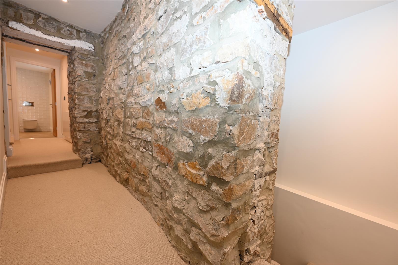 Exposed stone features, ceiling beam and stone fireplace. Chamfered window to front, spot lights, recessed shelf with downlight, tiled flooring with underfloor heating. Open walk through to the kitchen / dining room.