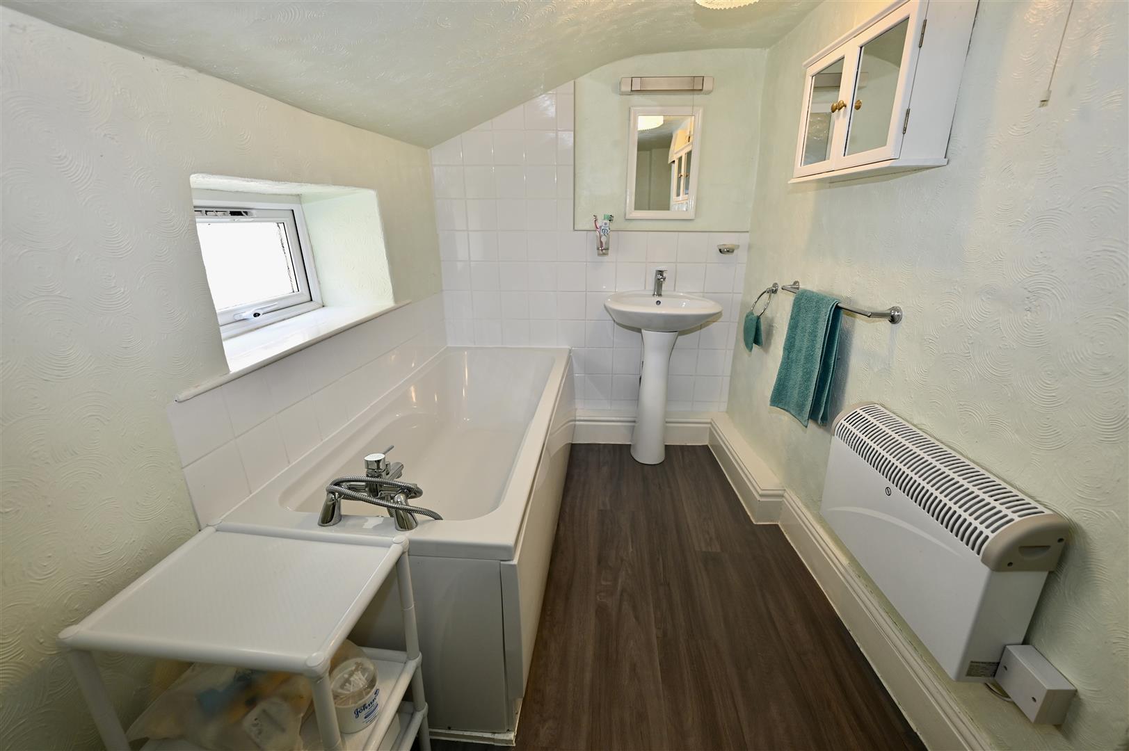 Having a white suite comprising of panelled bath with shower mixer, wash hand basin, w.c, electric radiator, fan heater and a double glazed window with obscured glass.