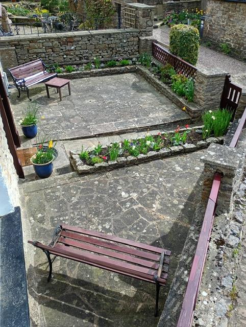 To the front of the property there is a South facing enclosed flagged cottage garden with raised borders and fabulous views.