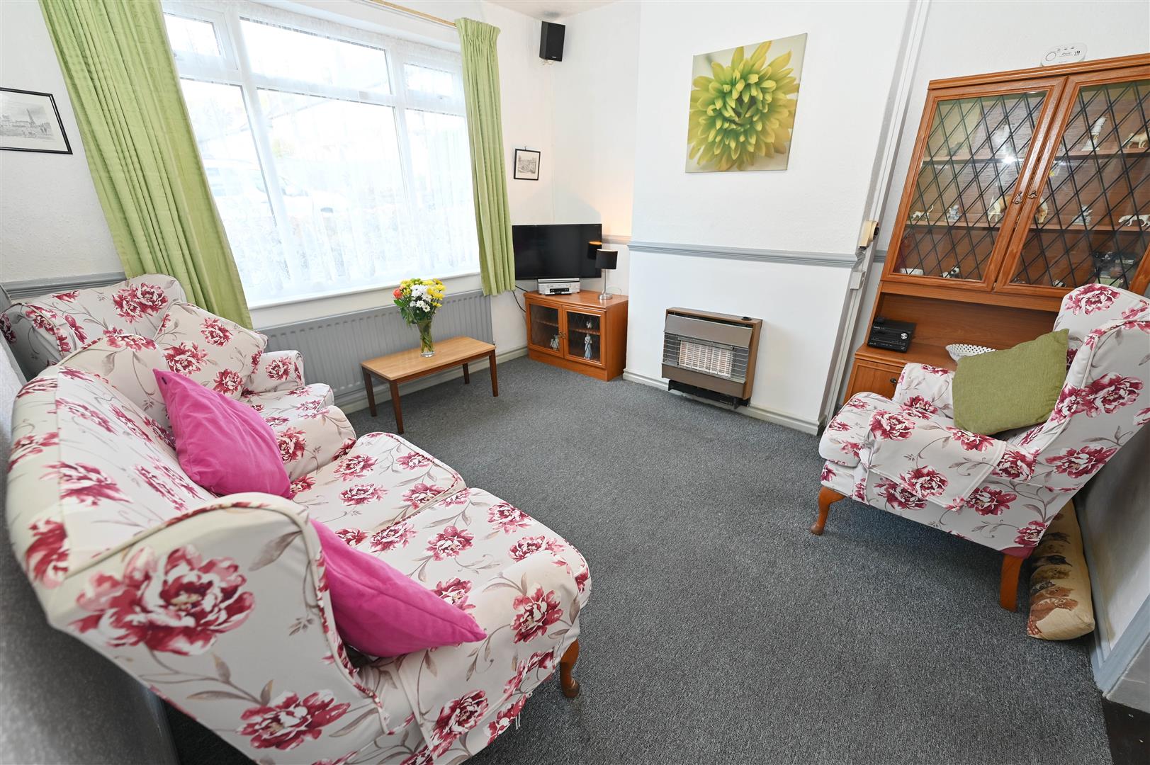 UPVC bay widow to front enjoying views of the garden. Focal point of the room being the marble style fireplace with hearth incorporating a living flame coal effect gas fire (temporarily isolated). TV point, double radiator, dado rail and two wall lights.