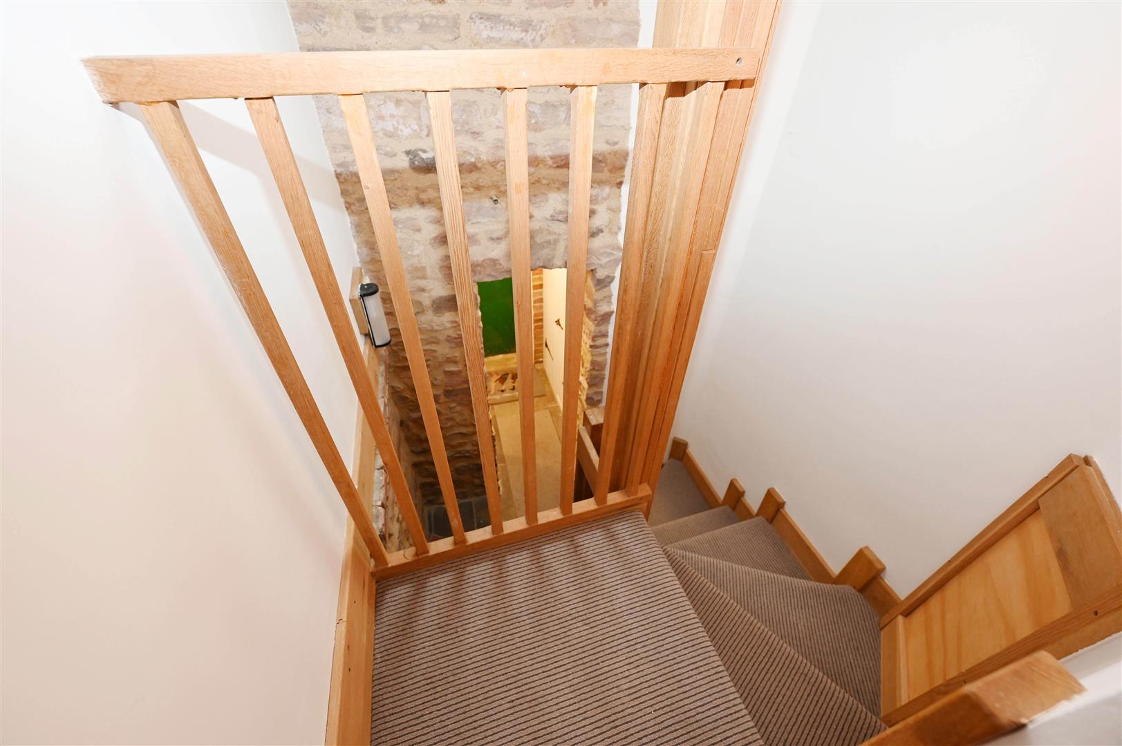 Exposed stone features & Oak staircase to first floor with cupboard under & built-in cupboard.