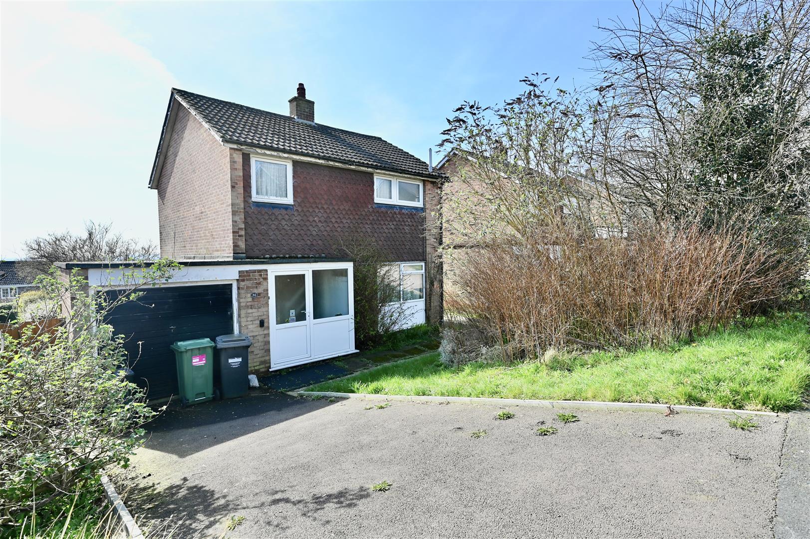 To the front of the property there is a lawned garden with mature trees and shrubs, a driveway leads to the garage and provides off road parking for one vehicle. There is a paved path to the side of the property leading to the rear garden.