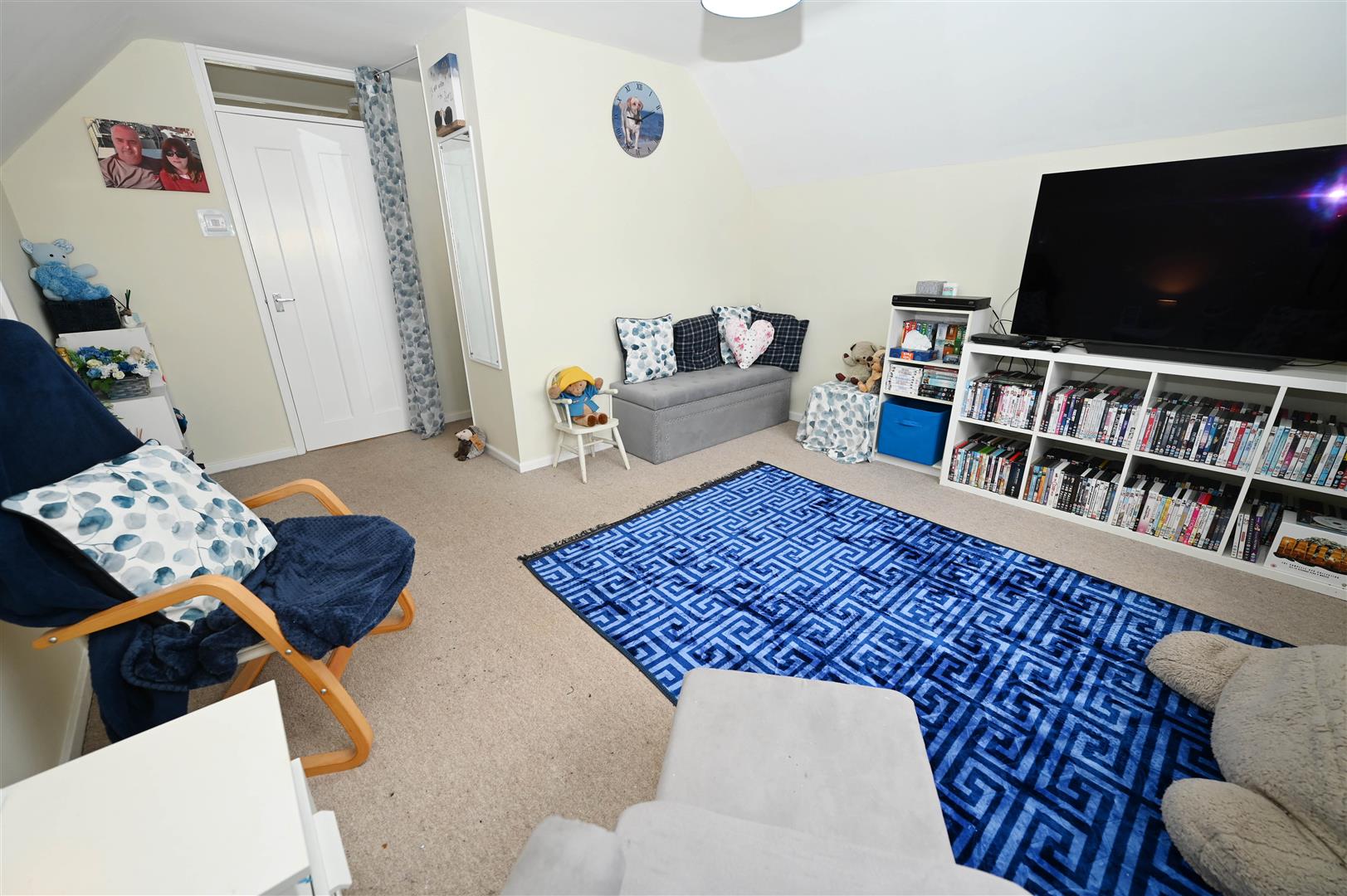 Including walk-in Dressing Area with light point. Door to useful Eaves Storage & UPVC double-glazed window to front.