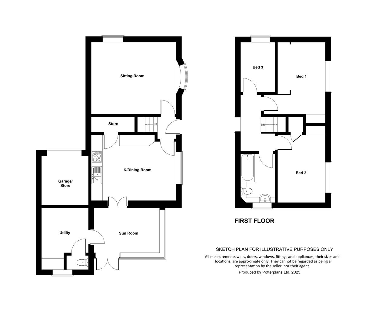 DETACHED 3-Bedroom House with adjoining 'GARAGE'-STORE. SITTING ROOM, KITCHEN/DINING ROOM. SUN ROOM & UTILITY/WC; 3 BEDROOMS & BATH?SHOWER ROOM. Screened & Enclosed GARDEN, 'GARAGE'-STORE & PARKING. Gas Central Heating & UPVC Double-Glazing.