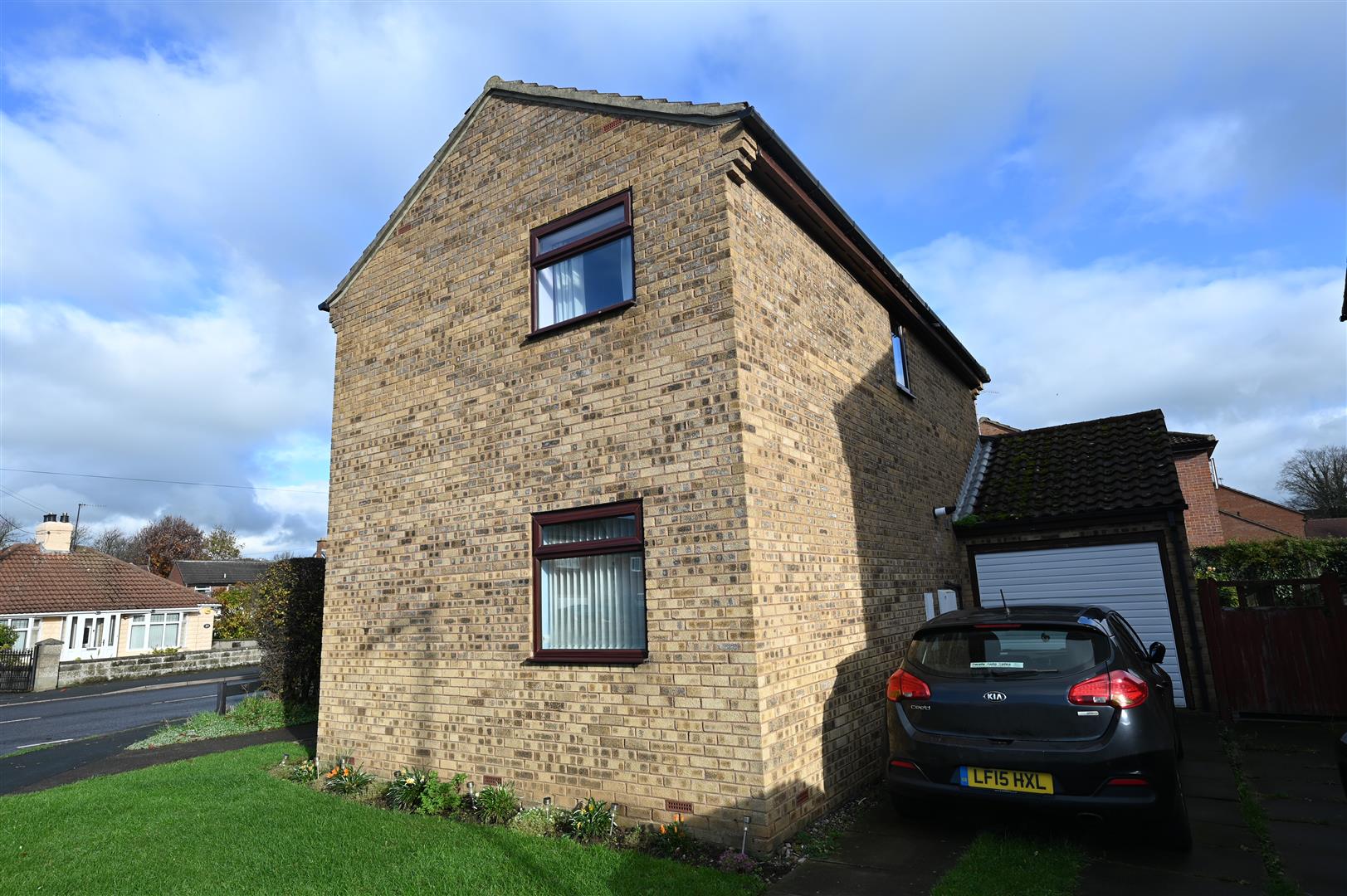 Front flagged area with beds & public pathway with hedge screen. Side lawn with flagged 2-car off-street parking leading to: