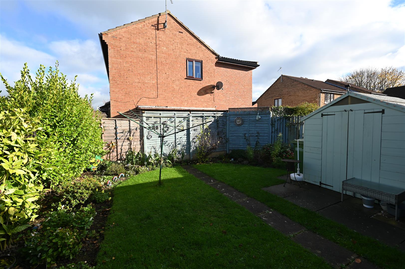 Lawned garden with flower/shrub border, SHED, outside lighting & cold-water tap.