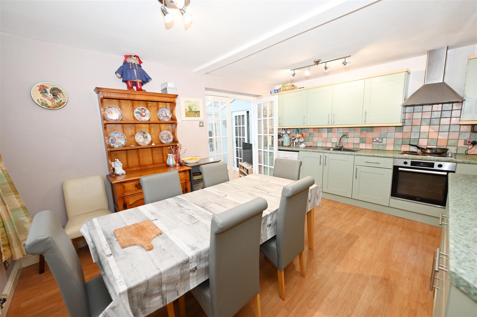 Plus walk-in STORE with light point. Extensive range of wall & floor units with worktops & inset 1 & ½ bowl sink, integrated electric oven & hob with extractor, fridge space & plumbing for dishwasher. UPVC double-glazed window to front & UPVC double-glazed doors to: