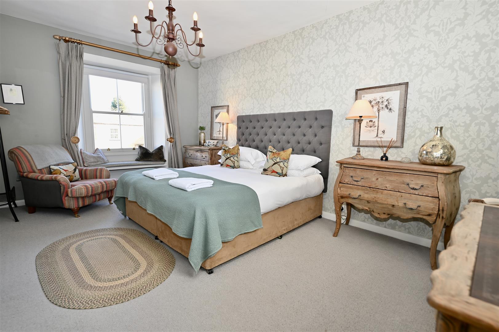 A double bedroom benefitting from lots of natural light, having a sliding sash window with a window seat to the front and a window to the rear. Central heating radiator and large over the stairs storage cupboard.