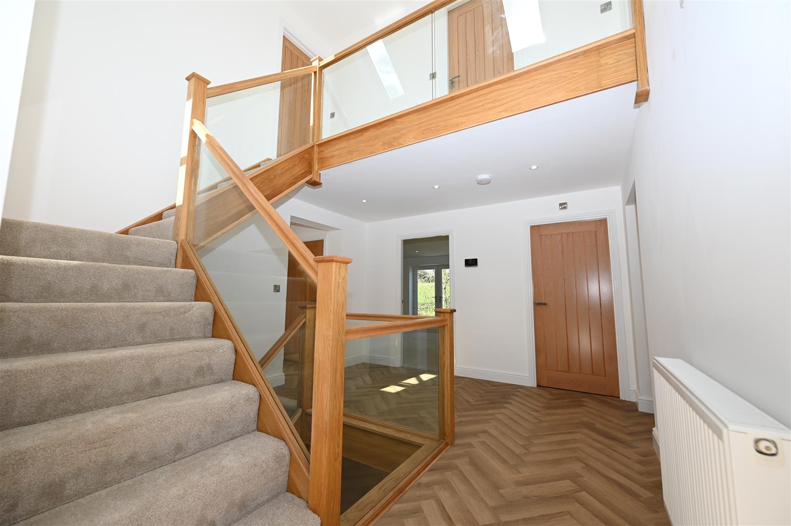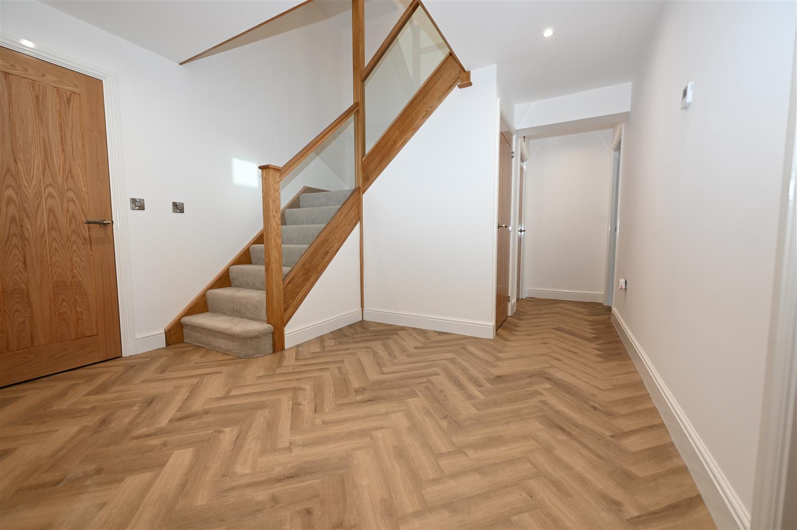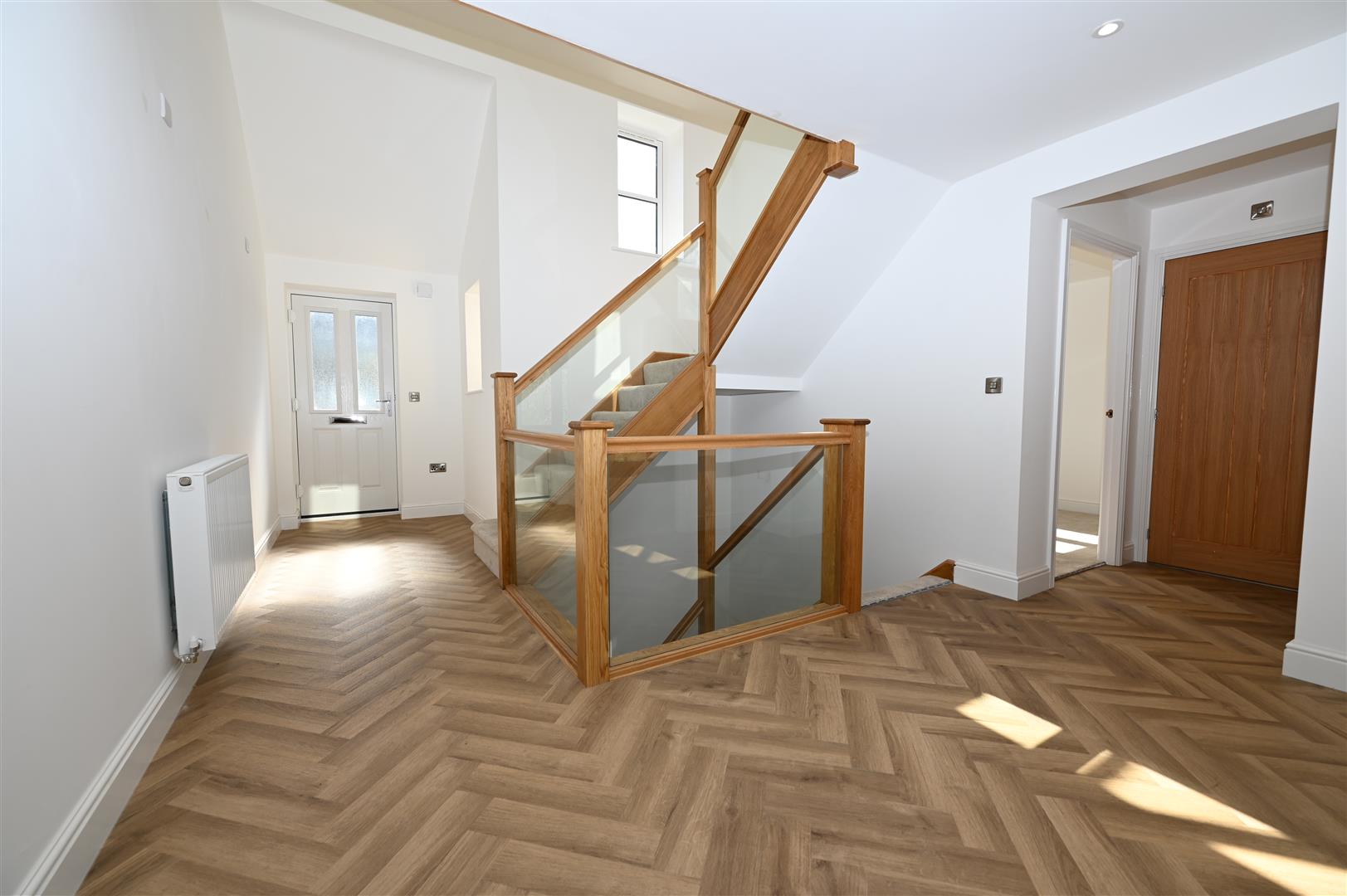 Light-filled with an Oak & glazed balustrade staircase to LOWER & UPPER FLOORS. Built-in coats cupboard. Windows to front & side.