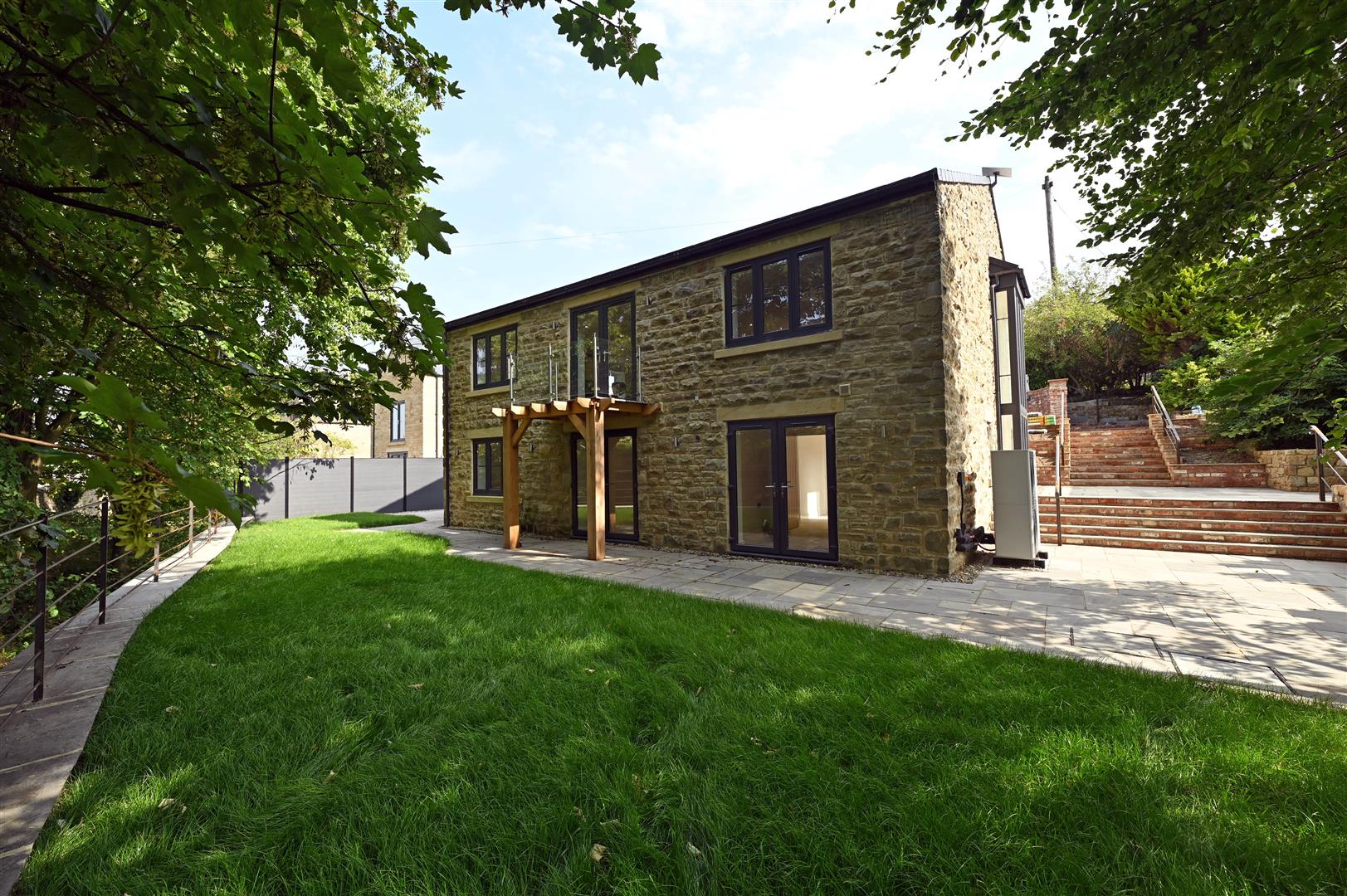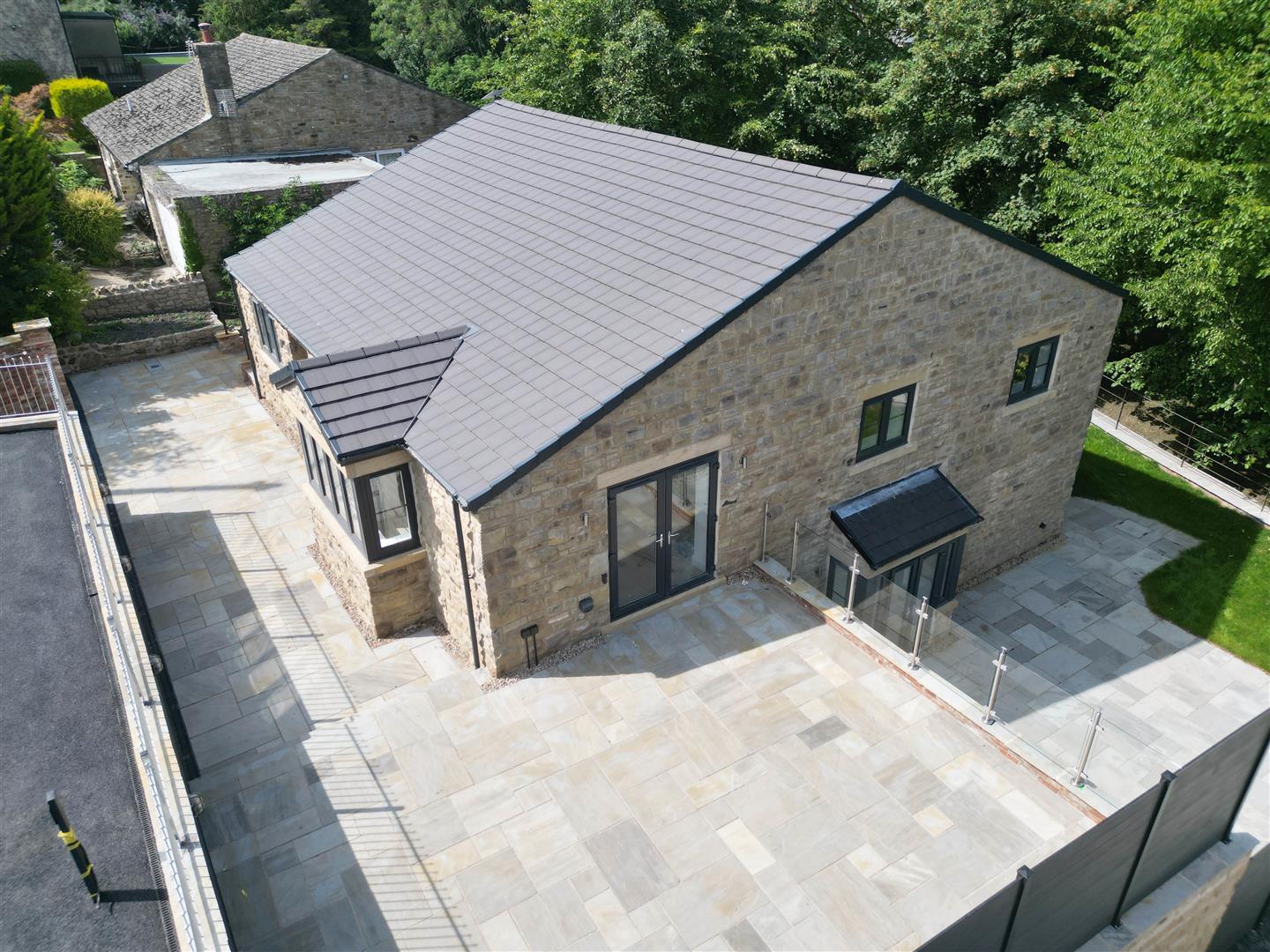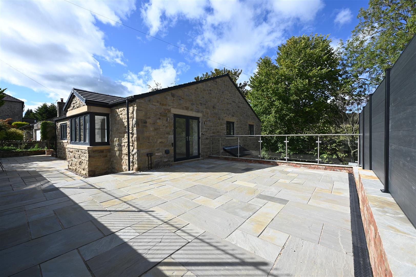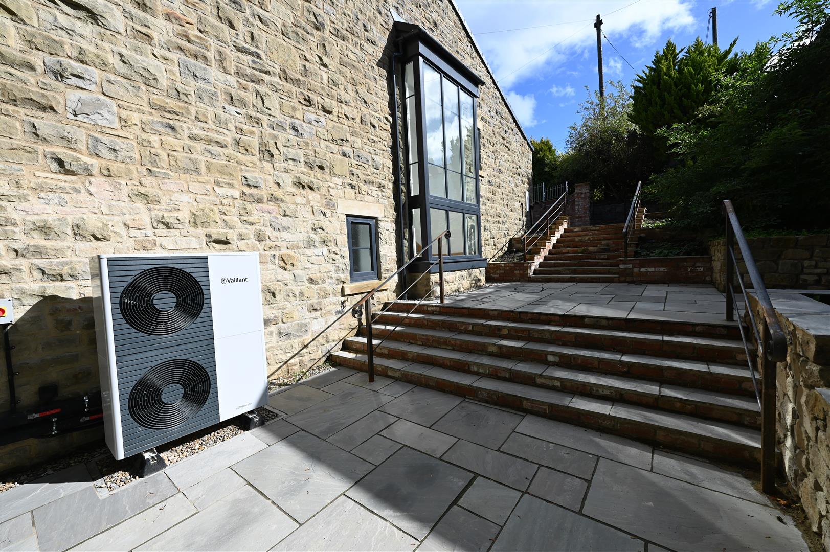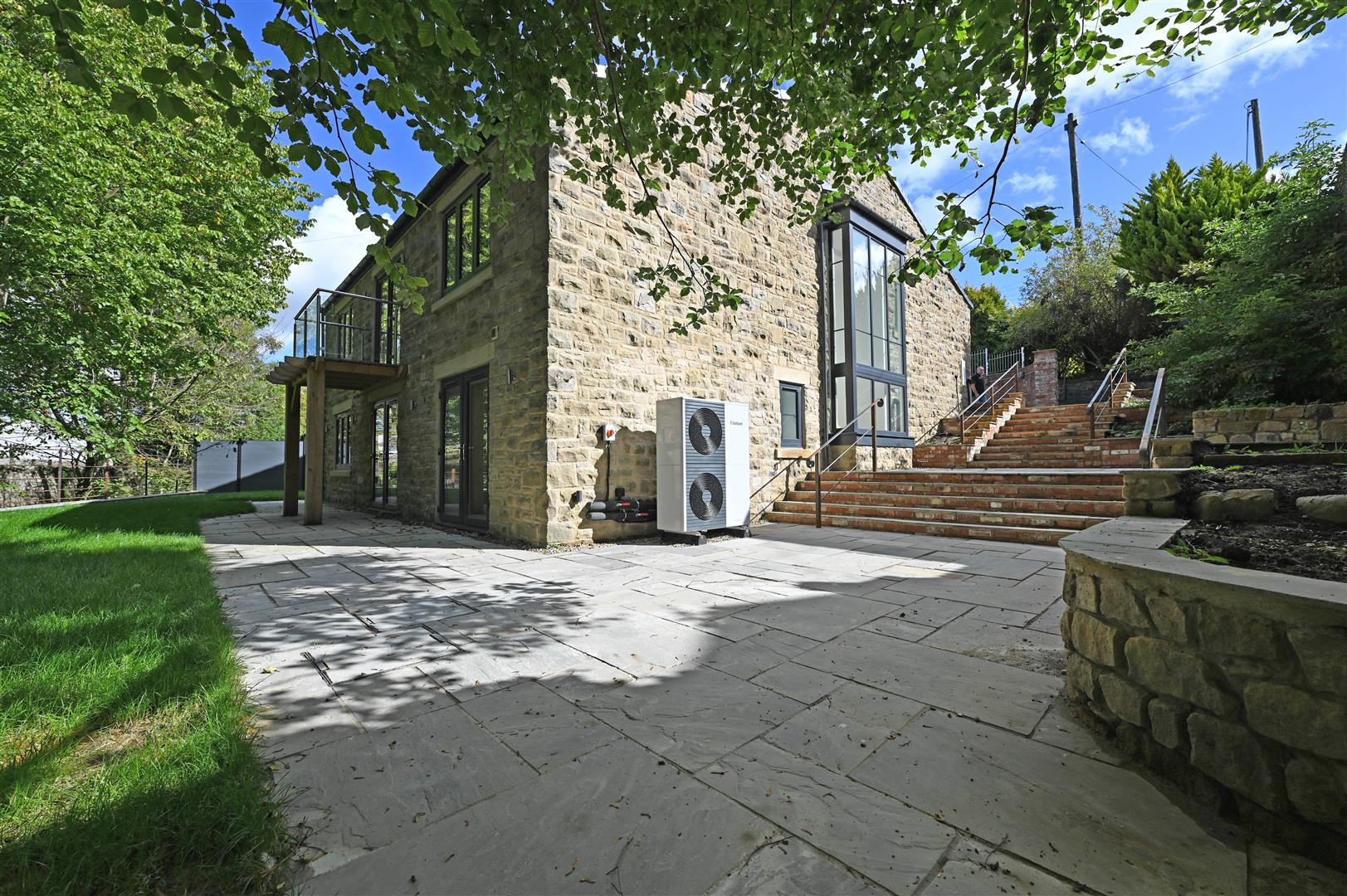4-Car PARKING area with EV charging point. Wide steps with outside lighting to hard-landscaped upper PATIO area extending to a 7.74m x 5.86m (25'4" x 19'2") side TERRACE with glazed balustrade; Steps to a lawned garden with estate fencing & a lovely stone flagged PATIO with feature brick wall, recessed lighting, power & cold-water tap. The gardens overlook Tunstall Beck & grazing land beyond.