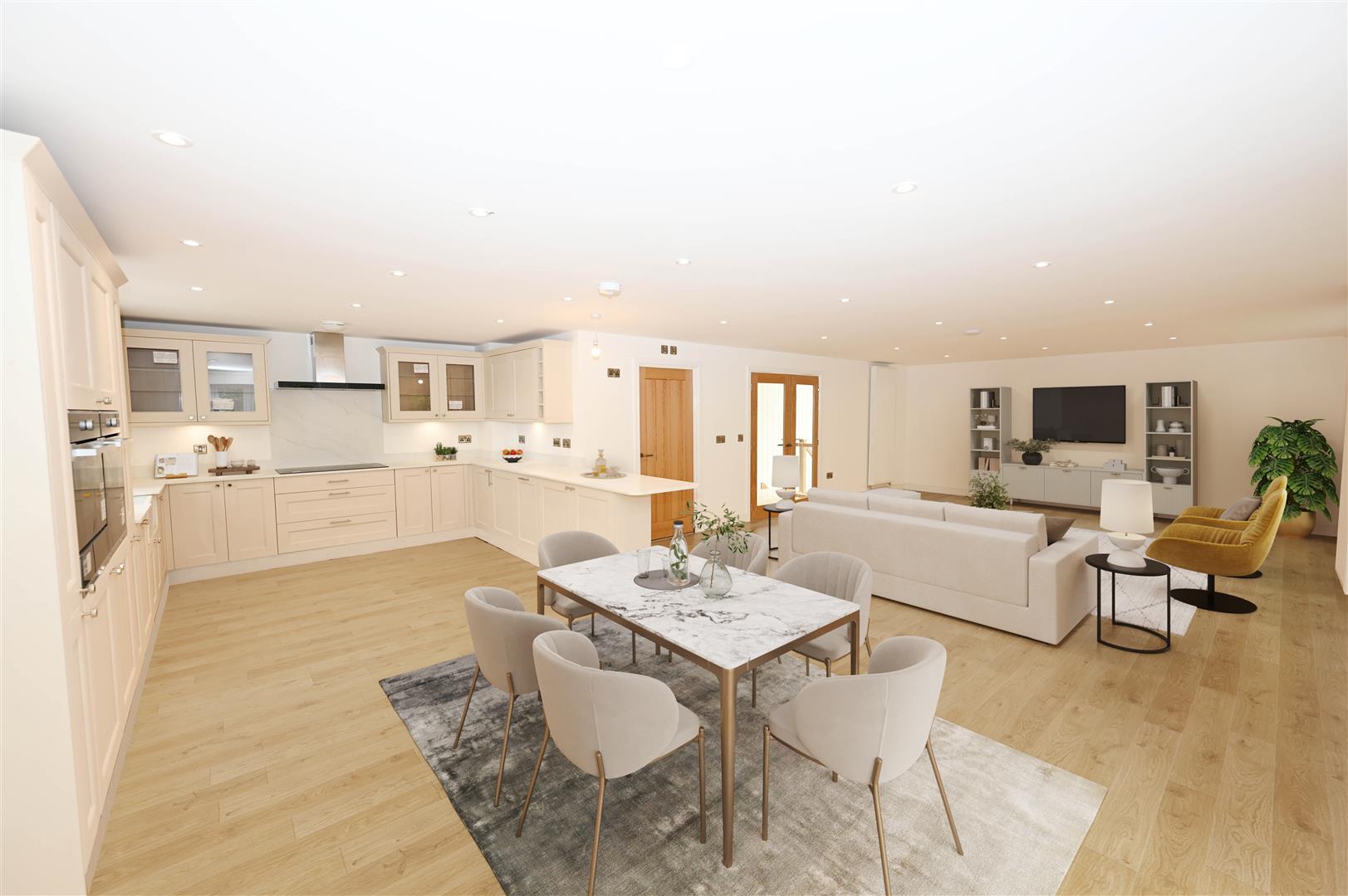 SHOWSTOPPING living space with a Juliet Balcony & walk-on glazed BALCONY, plus side & rear windows to enjoy the view. The Kitchen has with has an extensive range of under-lit Bridgemere wall & floor units, island unit, breakfast bar, pull-out larder unit, & pull-out recycle waste unit. Consentino Quartz worktops with ceramic twin Belfast sinks & boiling tap. Integrated appliances include: Pyrolytic multifunction oven, combi microwave/compact oven & warming drawer, 5-zone ‘Bridging’ Induction hob with ‘Connect & Cook’ extractor, integrated larder fridge & dishwasher.