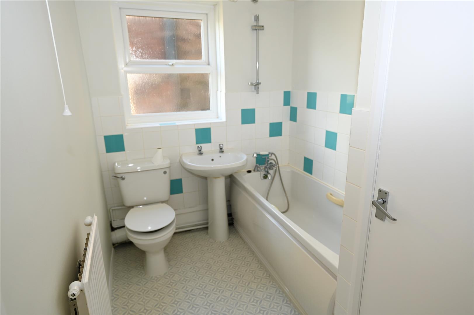Having a white suite comprising of panelled bath with shower mixer tap, wash hand basin, w.c, central heating radiator, UPVC double glazed window and large storage cupboard.