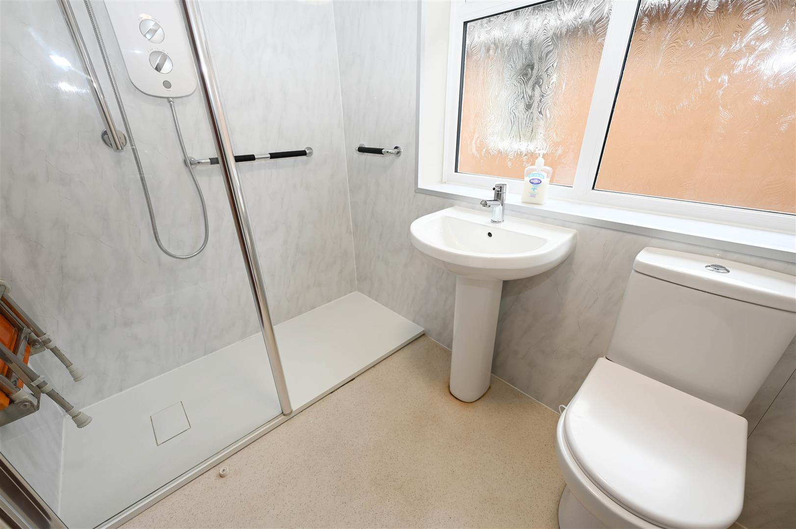 Refurbished with large walk in shower having mixer bar and shower head, shower screen and shower boarding. Pedestal hand basin, low level w.c, double radiator and UPVC window to side.